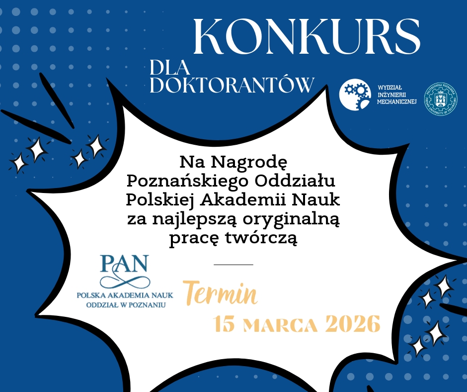 Oddział PAN w Poznaniu ogłosił XIV edycję konkursu na najlepszą oryginalną pracę twórczą opublikowaną w 2025 r., której wiodącym autorem jest doktorant z Wielkopolski lub Ziemi Lubuskiej. Konkurs ten przeprowadzony będzie w pięciu obszarach tematycznych, tożsamych z nazwami wydziałów PAN: