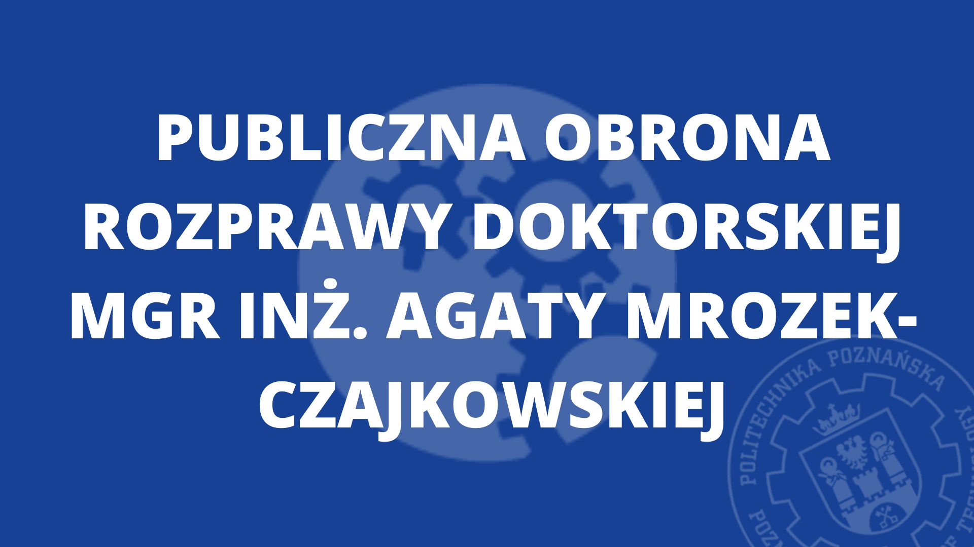 Obrona pracy doktorskiej odbędzie się w dniu 12 grudnia 2025 r. o godz. 11:00 w sali posiedzeń Rady Wydziału oraz Rady Dyscypliny Inżynieria Mechaniczna nr 208 (budynek z zegarem).