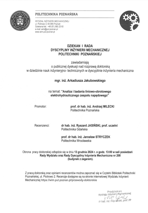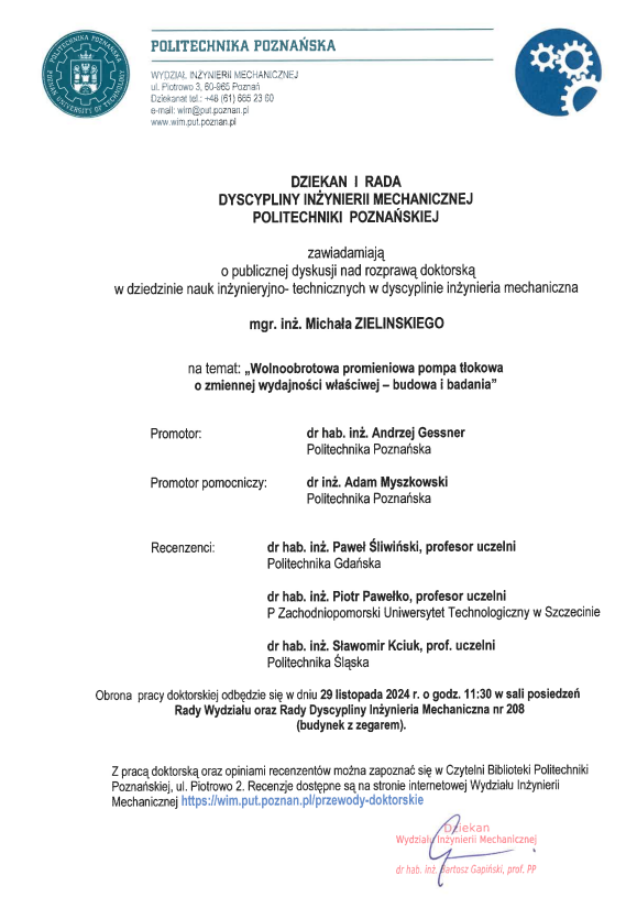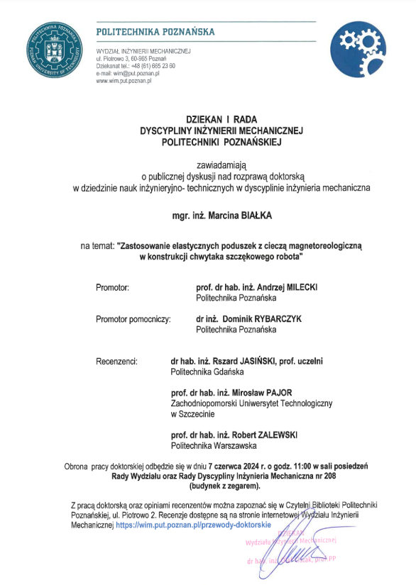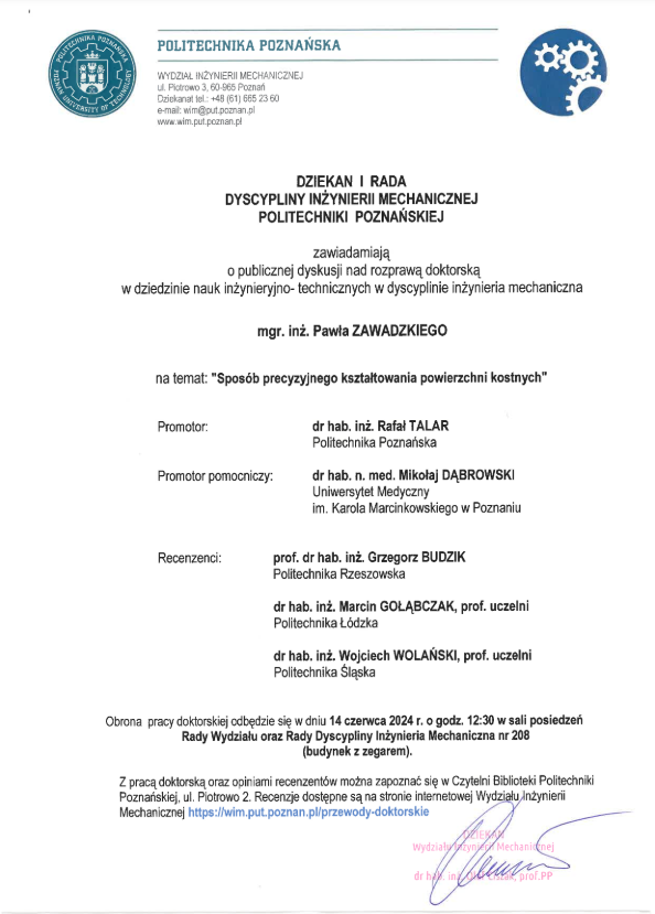 ZAWIADOMIENIE O PUBLICZNEJ OBRONIE ROZPRAWY DOKTORSKIEJ | |