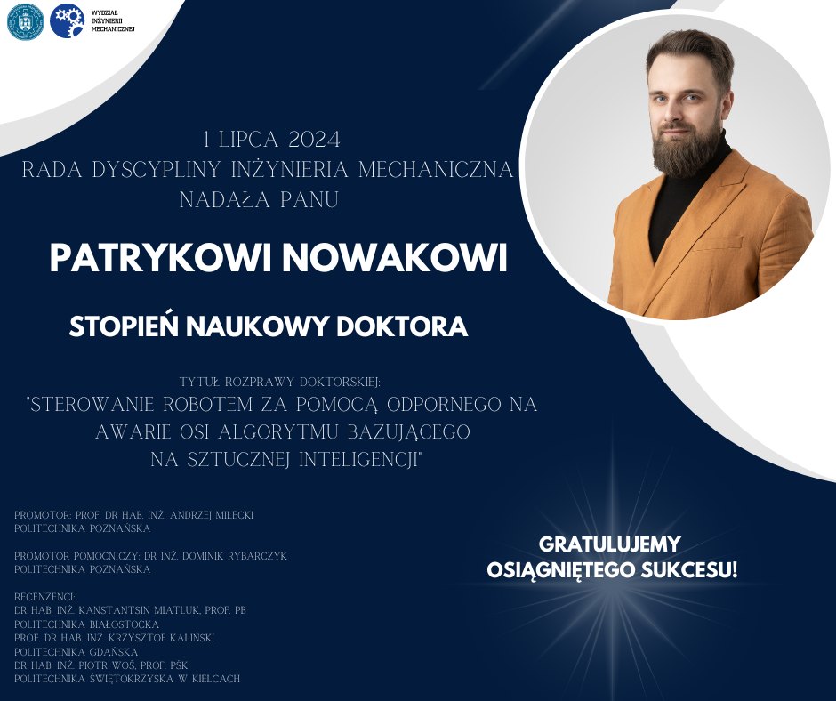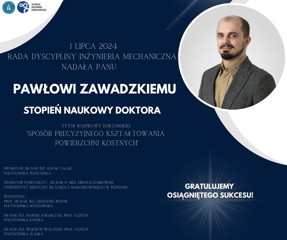 Doktorat z wyróżnieniem w dyscyplinie inżynieria biomedyczna dla dr. inż. Adama Patalasa